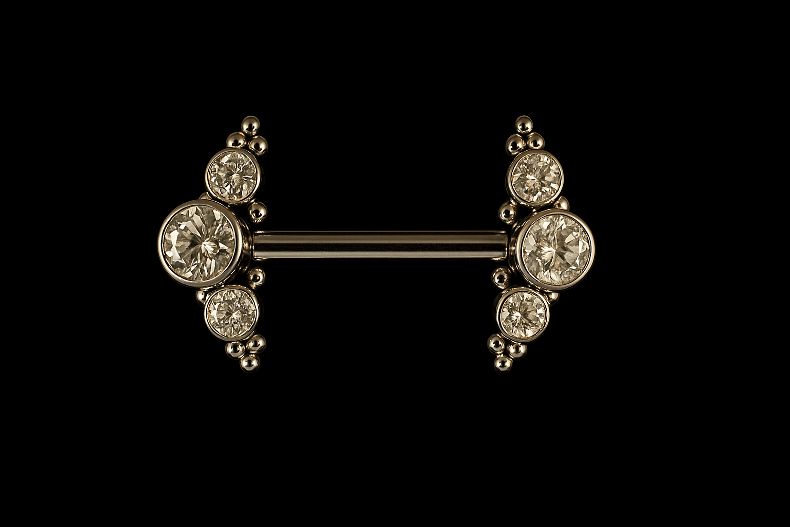 Tytanowy ozdobny kolczyk do sutka z kryształkami to elegancka i wytrzymała biżuteria, która łączy styl z komfortem. Wykonany z wysokiej jakości tytanu, zapewnia bezpieczeństwo i biokompatybilność. Kryształki umieszczone na kolczyku subtelnie odbijają światło, a zdobienia nadają wyjątkowego blasku i elegancji. Lekka konstrukcja tytanowego materiału gwarantuje wygodę noszenia przez cały dzień, a nowoczesny design sprawia, że kolczyk doskonale komponuje się z każdą stylizacją. Idealny wybór dla osób szukających efektownej i trwałej biżuterii.